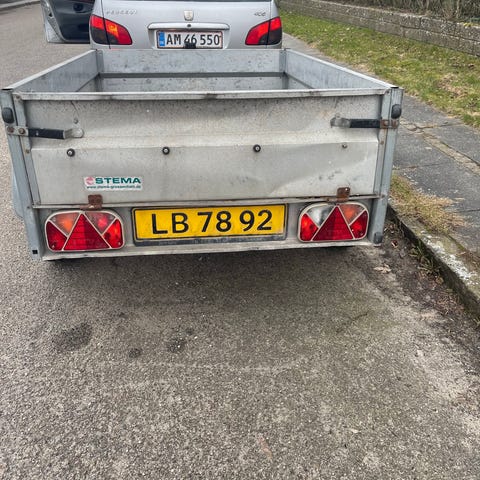 Stor ældre, tung træ trailer. 120 x 244 cm. Der er lavet helt ny strøm i efteråret.