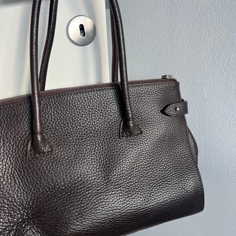 Khaite lædertaske til kvinde i beige læder. Tasken har en fast metalbøjle foroven i guldfarvet metal og små metalfødder i bunden, som beskytter læderet ved afsætning. Velegnet som håndtaske eller clutch til hverdag og brug ved særlige lejligheder. Indvendig opdeling og øvrige detaljer afhænger af den konkrete model.