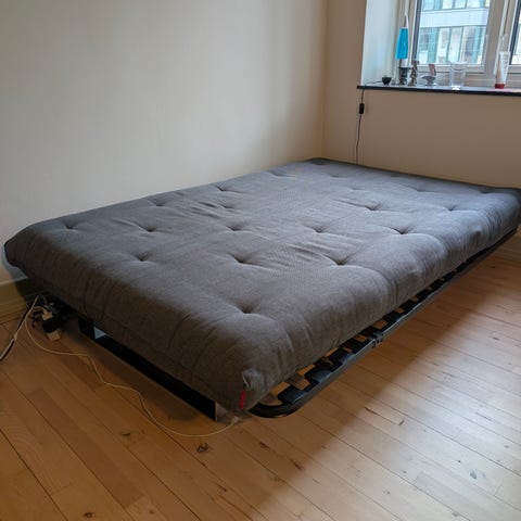 Super fin sovesofa. Perfekt til ungdomsværelset. Måler 140 cm udslået. Behagelig at sove på. Med opbevaring i bunden