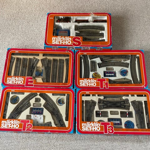 9 stik tog: HO 3147, HO4133,HO 4132 x 2, HO4164, HO 4133, 4636, 4514 og 2 unummererede personvogne til modeltog i skala HO. Klassisk personvogn i sølvfarve, leveres i original æske som vist på billederne. Egnet til brug på Märklin HO modeljernbaneanlæg med tilsvarende skinnesystem. Små plastik og papirbygninger, træer og ledning/elforsyninger.