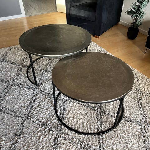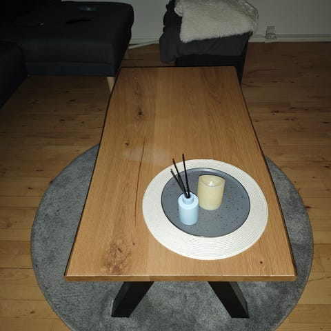Sælger dette sofabord som er lavet af en møbeldesigner og det er lavet i lakeret stål. Der findes kun det ene. Det har lidt ridser i lakken