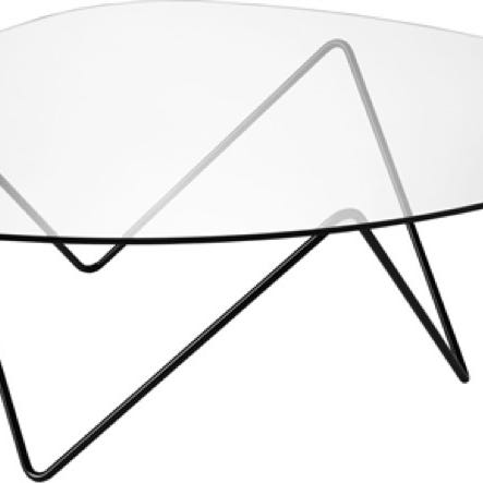 Elegant designer sofabord. Stel i mat sort og plade i glas. Pladen hviler ovenpå stellet så det er nemt at tage fra hinanden og transportere.