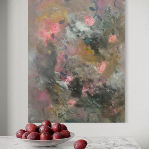 Abstrakt maleri i grønne, hvide og brune nuancer.. Signeret "Sofie". Siderne på lærredet er malet i en matchende grøn tone, så det kan hænges op uden ramme.