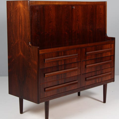Sigfried Omann par natborde af palisander. To skuffer. Senere monterede ben. Fremstillet hos Ørum Møbelfabrik. H. 60 B. 65 D. 45 cm.