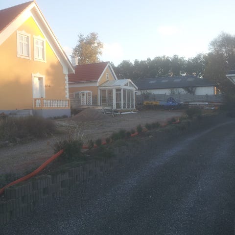 Udestue med glaspartier i hvid ramme. Konstruktionen består af flere store glasdøre/vinduer i fronten, som giver godt lysindfald og udsyn til terrasse og have. Skydedør i Ene ende. Velegnet som ekstra opholdsrum eller overdækket terrasseareal i tilknytning til huset. Buet spær - kræver nye trapez plader. Gulv følger ikke med.