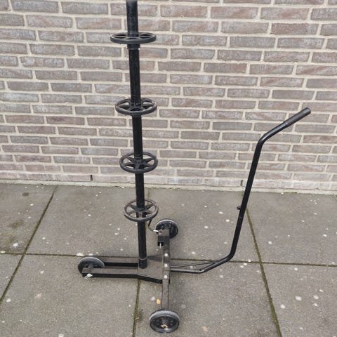 Denne hjulholder er brugt 1 sæson da jeg har valgt dækhotel. Det er til 15-22” skulle jeg mene (vores ID7 touring 21” har siddet der) og hygget en sæson.