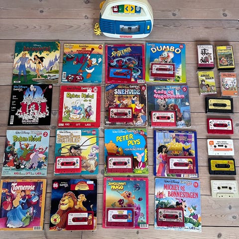 Disney Lyt og læs, kassettebåndoptager Fisherprice, Disney kuffert, Barbie mfl.