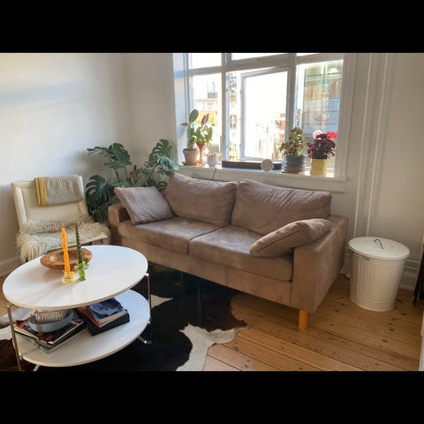 Sofaen skal hentes i Ballerup og kan skilles ad i to dele.