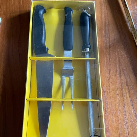 Dette stilfulde udskæringssæt består af en kniv og udskæringsgaffel i deres originale æske, fra HK of Norway. Begge dele er lavet i håndstøbt kvalitet, tin og har det traditionelle norske Acanthus-design, med dets buede blademotiver, der ofte findes i udskæring af trægenstande og møbler.