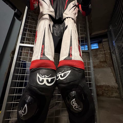 Vintage motorcykel læderdragt str. Small sort/rød