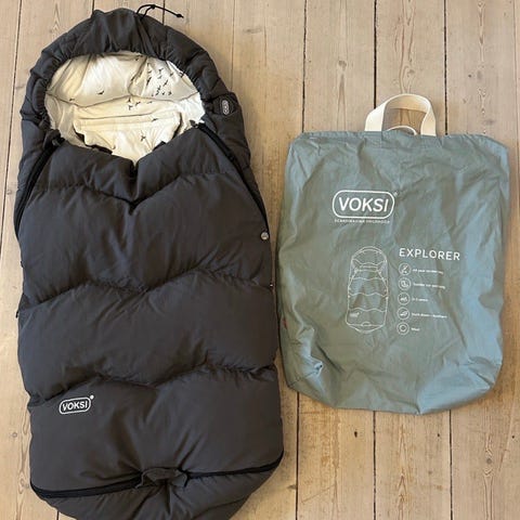 Sælger denne velholdte Voksi Explorer køreposer uden huller eller slitage. Den er super praktisk til både barnevogn og klapvogn, da den har uld i bunden og dun i toppen, som holder barnet lunt og tørt. Den kan lynes helt op og bruges som legetæppe, og der er naturligvis huller til 5-punktssele.