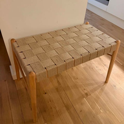 Super fin bænk/skoreol i massiv egetræ. Flot stand og sælges udelukkende pga pladsmangel.