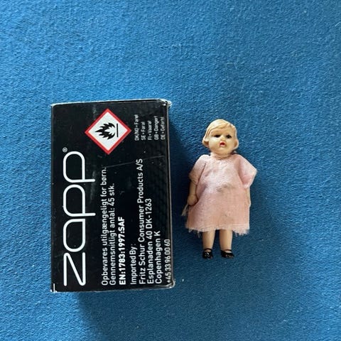 Den anden mørke dukke-celluid- med løse arme og ben ,måske beregnet til ophæng i forruden i bil.
