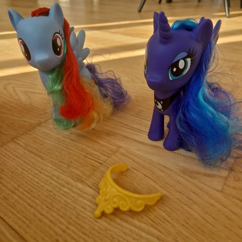 My Little Pony legetøjsfigurer i et blandet lot med flere forskellige ponyer. Figurerne har forskellig størrelse, farver og maner/haler i plast. Sælges samlet