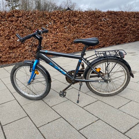 Børnecykel med 20" hjul i rød farve. Cyklen har bagagebærer og kurv foran. Velegnet til børn, der passer til en cykel med 20" hjulstørrelse.