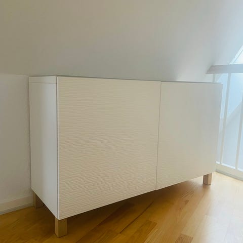 IKEA reol med åbne hylder, skab og skuffe nederst. Øverste del består af 2 åbne hylder til opbevaring af bøger, dekoration eller andre genstande. Nederste del har en lukket sektion, bestående af et skab og en skuffe. Reolen er egnet til brug hvor der er behov for både åben og lukket opbevaring.