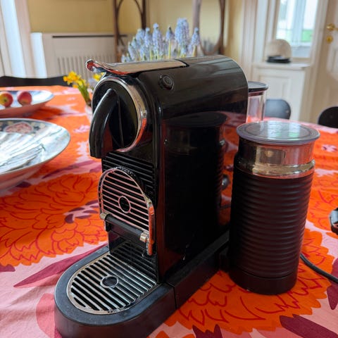 Nespresso D121 espressomaskine med integreret mælkeskummer. Maskinen anvender Nespresso-kapsler og har aftagelig drypbakke og vandbeholder. Farven er hvid med sorte og kromfarvede detaljer. Velegnet til tilberedning af espresso og kaffedrikke med mælk som cappuccino og latte.