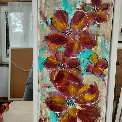 Maleri blomstermotiv akryl på lærred