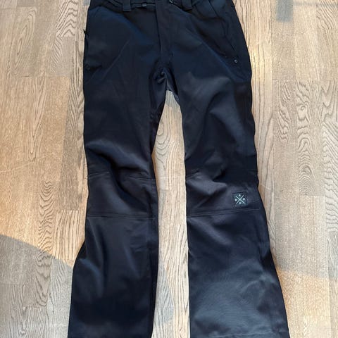 Revolution Race herrebukser i softshell, størrelse S (EU). Bukserne sorte og har flere lynlåslommer foran og bagpå. De har bæltestropper i taljen samt justeringsmuligheder ved linningen. Materialet er et teknisk, let strækbart stof, der egner sig til udendørsaktiviteter som ski, vandring og friluftsliv. Bukserne har forstærkninger og paneler, der giver god bevægelsesfrihed og funktionalitet.