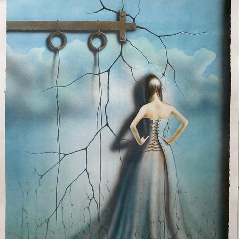 Billede, Thor Lindeneg, motiv: Klovn/puppetdoll, b: 60 h: 80, Et billede der er købt via en kunstforening i 90`erne