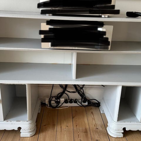 📺 Har været brugt som tv-møbel, så der er lavet plads til ledninger kan komme igennem midt på.