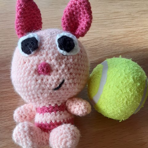 hæklet legetøj sut i rosa og blå. Legetøjet består af to hæklede sutter i garn, én i rosa og én i lyseblå med naturfarvet suttestykke. Velegnet som blødt legetøj til mindre børn eller som rekvisit i leg med dukker og bamser. Materiale er hæklet garn, som giver en blød og let struktur, der er nem for barnet at holde om.