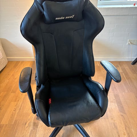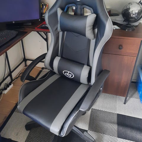 Sort og hvid gaming stol af mærket DX Racer.
