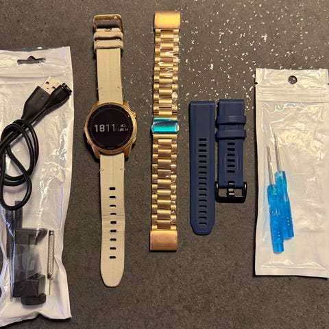 Garmin Fenix 7X Sapphire Solar smartwatch i sort. Uret har robust urkasse med safirglas og solopladning i displayet. Det leveres med sort silikonerem og opladningskabel med USB-tilslutning. Modellen er en multisport GPS-smartwatch, der kan bruges til blandt andet løb, cykling, vandring og daglig aktivitetsovervågning. Velegnet til brugere, der ønsker et sportsur med GPS, pulsmåling og avancerede træningsfunktioner.