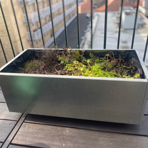 Altan plantekasser i sort metal fra Altanbutikken på Godthåbsvej - købt for nogle år siden men har ikke været i brug det sidste år. Kasserne er beregnet til montering på altanrækværk og har beslag på ydersiden. Indvendigt er der plastindsats med drænhuller i bunden, og vi har selv boret tre huller pr. metalkasse for at sikre at vandet kan løbe ud.
