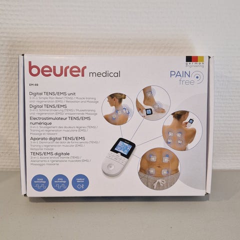 Beurer EMS maskine, med elektriske signaler som kan virke smertelindrende. Læs om den på nettet. Kun brugt 1 gang.