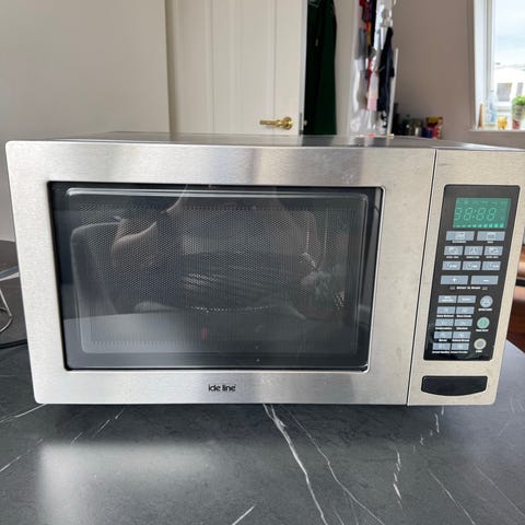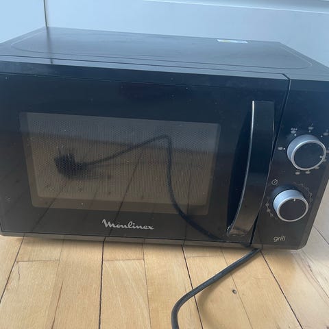 Moulinex Optigrill mikroovn i hvid. Modellen har frontlåge med stort vindue og mekanisk betjening med drejeknapper og knapper på siden. Indvendigt er der drejetallerken i glas. På indersiden findes skema med vejledende tider og vægte til optøning og tilberedning. Velegnet til almindelig opvarmning, optøning og tilberedning af mad i køkkenet.