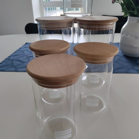 Opbevaringsglas 1 liter, Bodum, højde 16 cm. og diameter 9,5 cm.