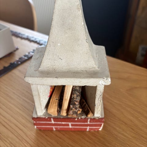 2 stk i kobber til brænde og et pejsesæt i plastik. Sælges kun sammen. Den største er 6 cm høj