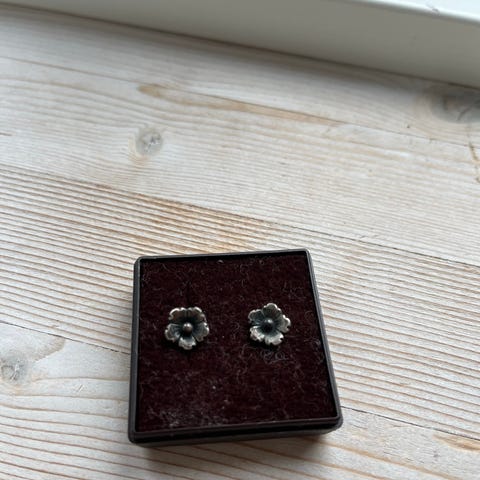 Små fine sølvøreringe med turkis, øreringene er til hul i øret, ca. 1/2 cm i diameter, se mål på billede.