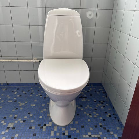 Ifö gulvstående toilet med Pressalit soft-close toiletsæde.