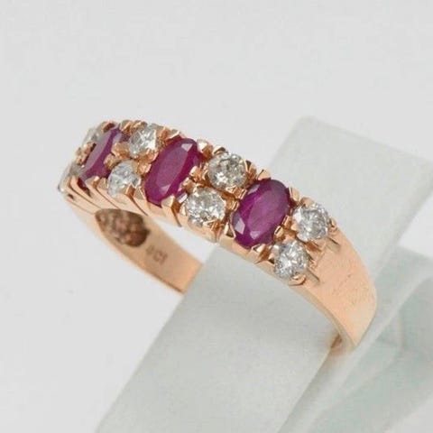 Elegant og feminin ring i 9 karat rødguld, str. 52, med en smuk og iøjnefaldende 1 carat morganit som centersten. Den bløde, rosa nuance i morganitten fremhæves flot af det varme rødguld og giver ringen et romantisk udtryk.