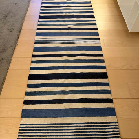 Smukt håndvævet kelimtæppe fra House of Dhurries sælges. Tæppet forener nordisk stil med flot indisk håndværk og har et elegant, tidløst udtryk, der passer ind i de fleste hjem. Det er fremstillet i en lækker kvalitet med fokus på både design og holdbarhed.
