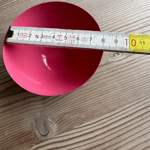 Normann Copenhagen skål i pink med sort underside. Skålen har en diameter på ca. 12,5 cm (målt med tommestok på billederne). Egnet til servering af fx morgenmad, snacks eller tilbehør ved borddækning. Designet er enkelt og funktionelt, typisk for Normann Copenhagen, og passer ind i mange typer køkkener og spiseområder.