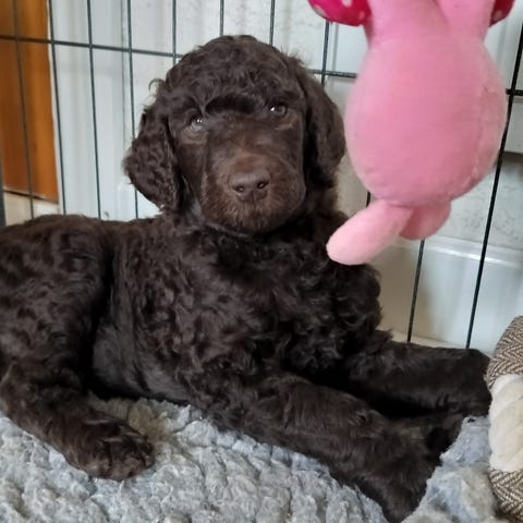 - Formentlig pelspleje svarende til en puddel, ved de hvalpe med krøller.
