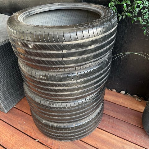 Næsten som nye Michelin sommerdæk sælges. Dækkene har siddet på en Hyundai Kona El-bil, men kan også bruges til andre biler. Sælges samlet
