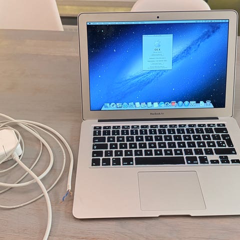 Apple MacBook Air 13-tommer bærbar computer i sølv. Modellen er fra 2017 og kører macOS Mojave version 10.14.6. Computeren har en 2,2 GHz Intel Core i7 processor, 8 GB 1600 MHz DDR3 RAM og 128 GB SSD-lager (ud fra standardkonfiguration for denne model, faktisk lagerplads kan kontrolleres i systemoplysninger). Grafikkortet er Intel HD Graphics 6000 med 1536 MB delt hukommelse. Velegnet til almindelige kontoropgaver, internetbrug og medieafspilning.