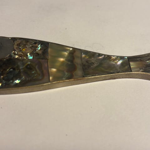 Brevåbner, Flot sort brevkniv med hoved fra Afrika eller lignede. Meget flot. Med udførlig dansk vejledning. Som beset. Fra ikke ryger hjem. Afhentet eller 58 kr. til forpakning/forsendelse og porto med tacking.