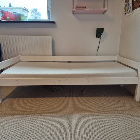 Hvidt stræklagen i rigtig pæn stand. Passer til juniorseng.