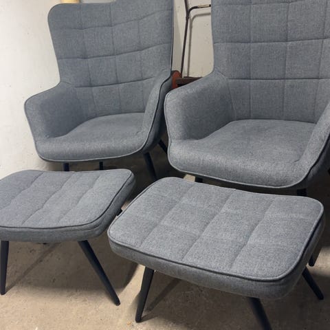 Andet, stof, anden størrelse , tammy, 2 stk lænestole med skammel sælges samlet se billeder dor stand , nypris pr stol med skammel 4000 kr. Pris pr stk.