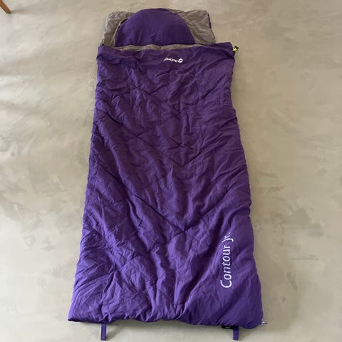 Outwell Kids sovepose i rød med hvide prikker og gule detaljer. Soveposen kan foldes sammen til en kompakt taske med bærehanke og lynlåslomme på ydersiden. Velegnet til børn til brug i telt, campingvogn, shelter eller som ekstra sovepose derhjemme. Designet gør den nem at transportere og opbevare, når den ikke er i brug. Brugt få gange.