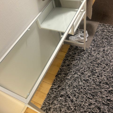 Sminkebord, makeupbord, skrivebord med synlige brugsspor fra bla makeup. Maling vil gøre bordpladen flot igen.