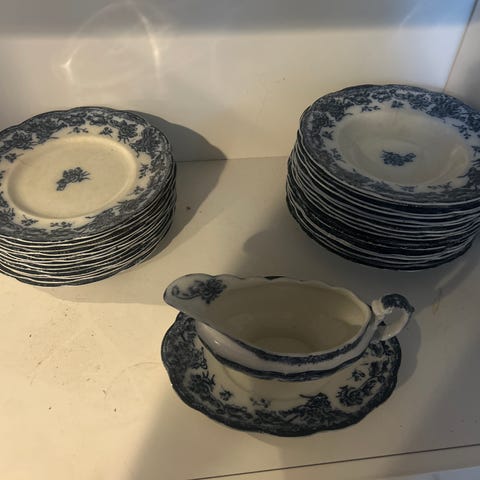 Fine gamle fajance tallerkener. 3 flade tallerkener og 8 dybe.