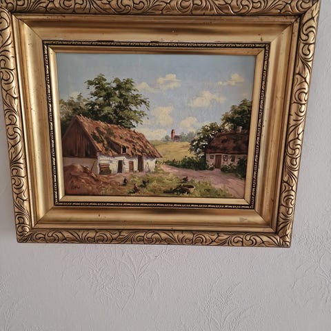 Maleri strandmotiv i guldramme