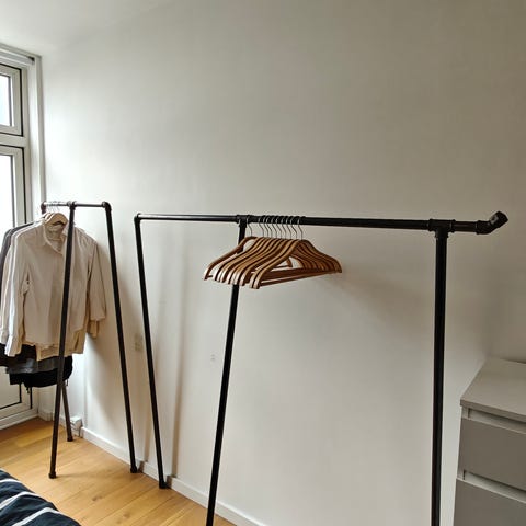 Fedt rustikt tøjstativ lavet af rør, med plads til meget tøj! Mål ca. h154 x b70 x d40 (har også et til salg i ca. mål h148 x b160 x d40)