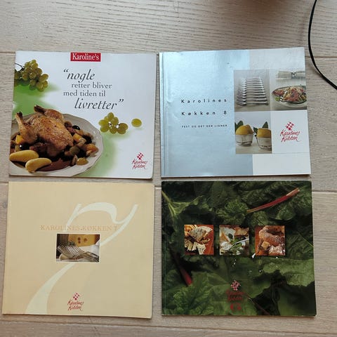 Karolines Køkken kogebøger hæfter med opskrifter. Sættet består af flere små opskriftshæfter med fokus på madlavning og bagning. Hæfterne indeholder blandt andet opskrifter med mejeriprodukter, desserter og hverdagsretter. Velegnet som supplement til køkkenbiblioteket eller til samlere af Karolines Køkken-serien.
